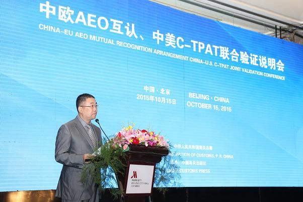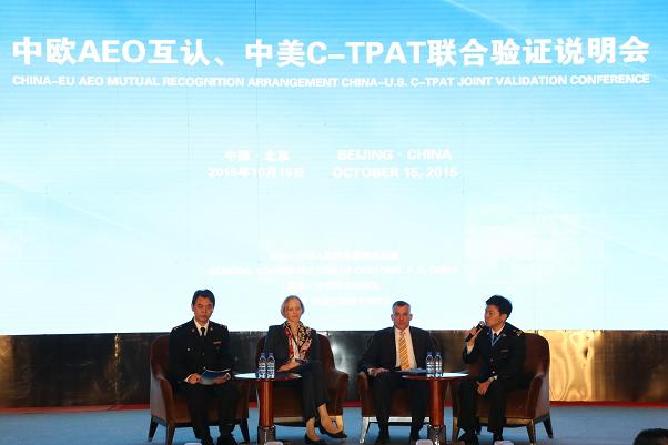由海关总署举办的“中欧AEO互认、中美C-TPAT联合验证说明会”于10月15日在北京召开。来自中国、欧盟、美国海关的专家及其驻华使馆海关专员、美国商会、欧盟商会代表和全国270余家进出口企业代表共400余人参加了说明会。据悉,中欧AEO互认将于今年11月1日正式实施。中国AEO认证企业出口到欧盟的货物,在欧盟28个成员海关通关时,可享受到和欧盟境内认证企业一样的通关便利。