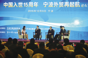 “中国入世15周年宁波外贸再起航”论坛现场。(崔引摄)
